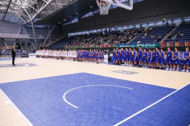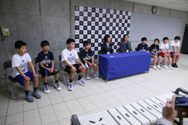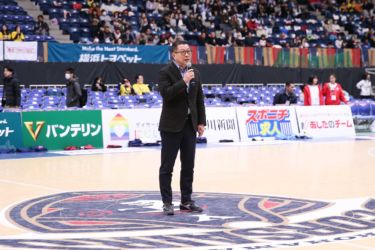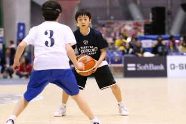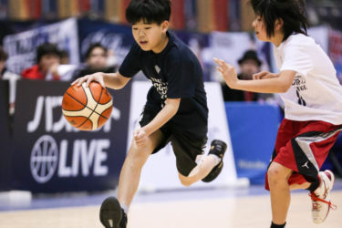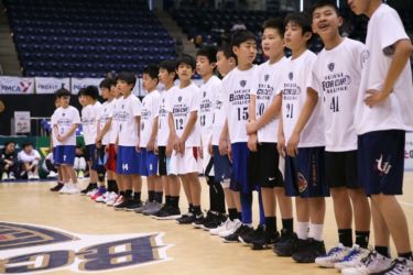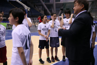 24日の「ビーコルCUP」には、Bリーグの大河正明チェアマンも駆けつけて観戦。試合後には健闘した子供たちを讃え、未来のプロバスケ選手にエールを送っていた。