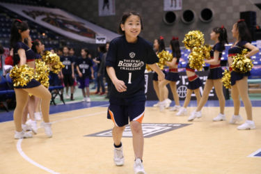 おこなわれた試合は夢ステージと呼ぶにふさわしいものだ。横浜国際プールでおこなわれるビーコルの試合演出がほぼ全てシミュレートされ、試合前のシューティング練習はもちろん、華やかな選手入場、試合中のMC、B-ROSEユースによるパフォーマンス、そして試合後の報道記者会見に至るまでが、ほぼ忠実に再現されて試合が進行していく。都筑の子供たちにとっては、憧れのビーコル選手やBリーガーと同じコートで試合が出来ただけでなく、Bリーグと同じ試合演出や試合進行も体験出来る貴重な機会になっていた。