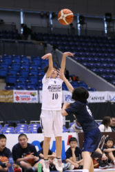 「いつも自分がやっているコートとは全然違って、普段やっているドリブルだと跳ね返って来なくて、しっかりと強くつかないといけませんでした。シュートも、リングの後ろの壁に距離があったので距離感を掴むのに苦労したんですけど、あのゴールにシュートを入れるプロの選手はやっぱり凄いなと思いました」