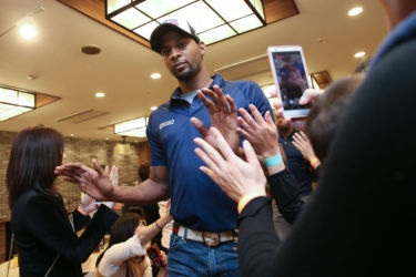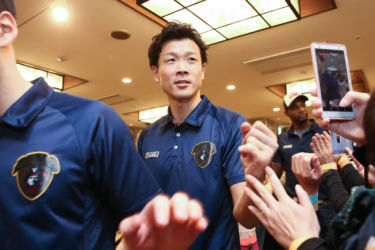 「3月から最後の力を振り絞って全力で闘っていきます。今日、頂いた皆様ひとりひとりのお言葉や笑顔が選手の力になります。前半戦は試行錯誤が続いて、苦しい闘いが続きましたが、2019年になってブランドン・コストナーが入って、チームは熟成しつつあります。Bリーグになって1年目はB2との入れ替え戦、2年目の昨シーズンは残留プレーオフでB1に勝ち残りました。そして今シーズンは、何としても残留プレーオフに出ないで、4月の段階で来シーズンへの準備に取り掛かれるようにしたい。最後まで応援をよろしくお願い致します」