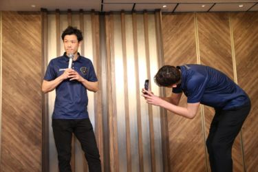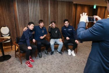 選手と岡本CEOの挨拶では、それぞれが3月・4月決戦へ向けた強い決意を表明した。