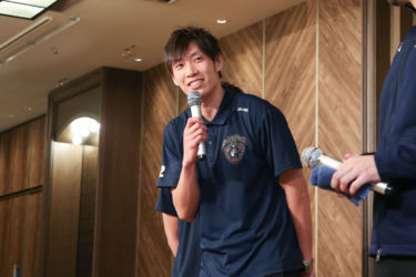 「今シーズン、いろいろとキツいと思うんですけど、皆さんと他の選手と一緒の気持ちで闘いたいと思っています。応援をぜひお願いします!」