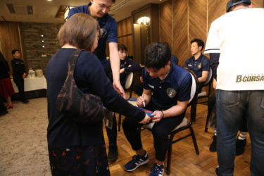 横浜市内のホテルでおこなわれたこのイベントでは、約90名のビーコルブースターが集結。ビーコル選手たちと写真撮影などで触れ合った。チームは、代表戦ブレイクの中で、航海途中のドック入りともいえる練習調整の真っ最中だが、その合間をぬっての参加となった。選手たちはトークショーもおこない、普段はなかなか聞くことが出来ないプライベートトークを披露して会場から爆笑を誘った。ビーコルブースターとの写真撮影では、サービス満点の表情やポーズでカメラに収まり、ブースターにとっては貴重なお宝2ショット写真に。選手たちもブースターと気さくに接し、終始笑顔が絶えない家族的な雰囲気が印象的だった。